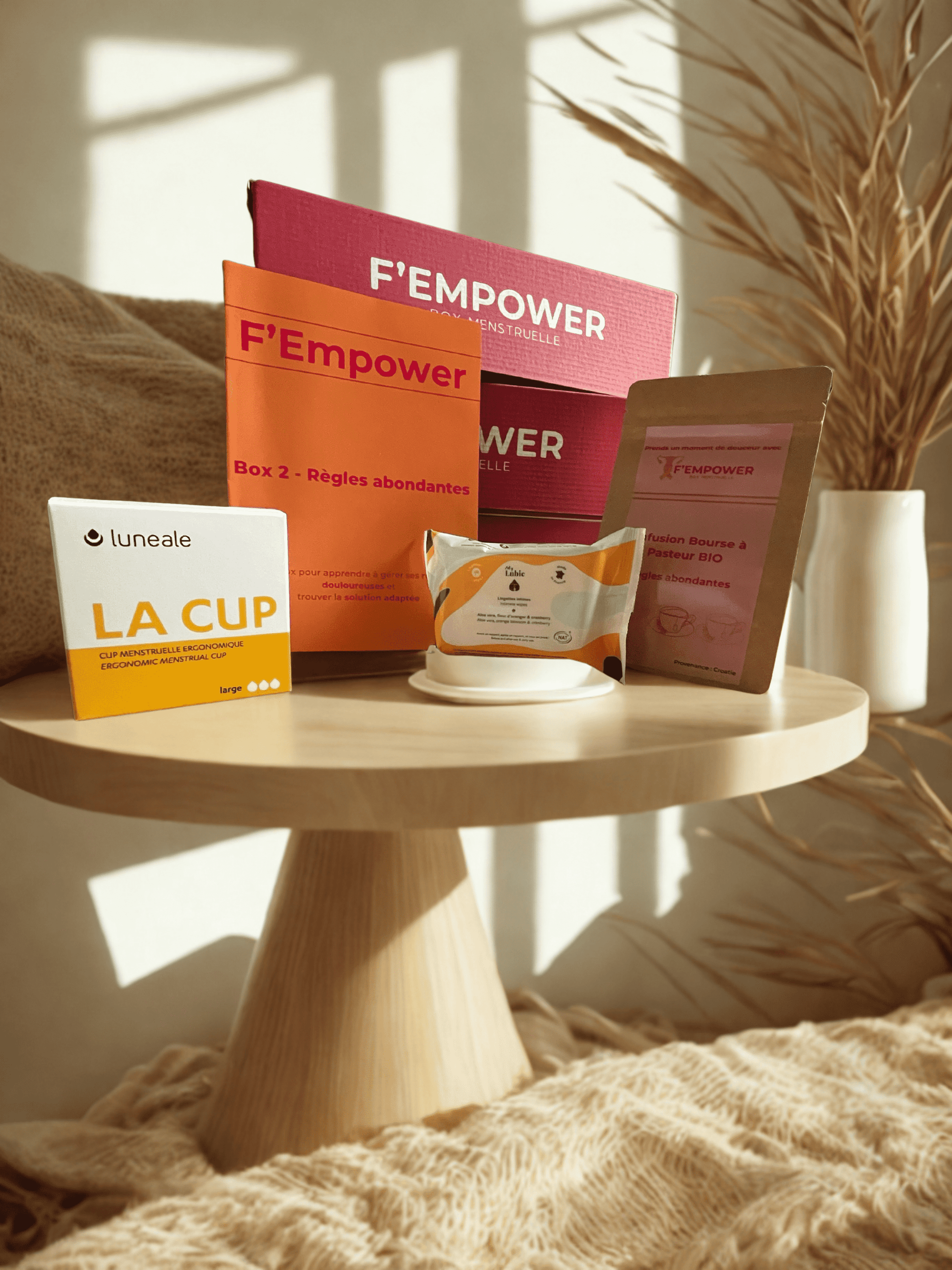 Une box conçue pour accompagner les règles abondantes naturellement, avec des solutions durables, écolo et apaisantes.